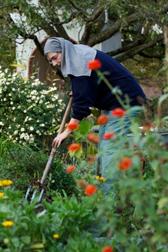 Wir wirken zum Beispiel im Garten, in der Küche oder im Rahmen unserer Bildungsangebote, aber verstehen dies nicht als Arbeit im herkömmlichen Sinn: Jede Aufgabe – ob groß oder klein, ob komplex oder einfach – ist für uns ein Dienst an Gott, an unsere Mitschwestern und an die Welt. Daher führen wir jeden Handgriff oder Projektschritt achtsam, respektvoll und sorgfältig aus. Weil jede Schwester dabei ihre individuellen Talente und Fähigkeiten einbringt, erstrahlt in jeder Tätigkeit auch die Vielfalt und Schönheit, die Gott uns Menschen schenkt.