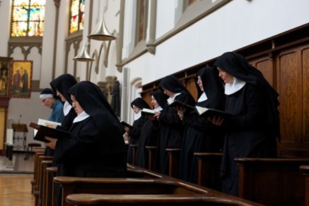 Kraft schöpfen im Gebet: In unserem Raderberger Kloster läuten die Glocken fünf Mal am Tag – und genauso oft unterbrechen wir unsere alltäglichen Arbeiten. Denn wir kommen mit dem Lauf der Sonne zusammen, um Gott zu preisen und für die Menschen in der Welt zu beten: mit den Laudes, in der Eucharistiefeier, beim Mittagsgebet, zur Vesper und zu der Vigil (Nachtgebet).