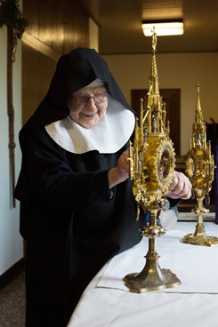 * Wir folgen dem Charisma von Mutter Mechthilde und verstehen uns als Anbeterinnen: Jede Schwester nimmt täglich für 30 Minuten vor dem Tabernakel, in dem sich das Allerheiligste befindet, Platz. So halten wir – stets in der Kirche präsent – den Himmel für alle Menschen offen.