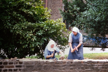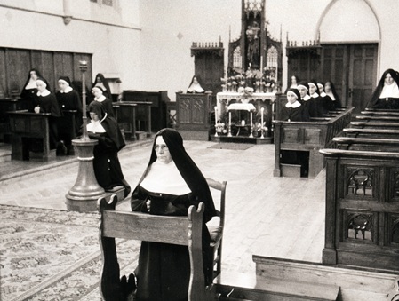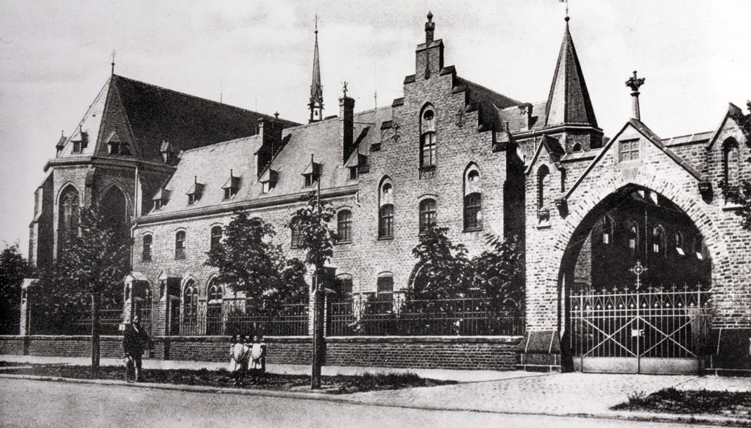 Zunächst ließen die Frauen ein Mietshaus in der Innenstadt provisorisch zu einem Konvent umgestalten – in der Domstraße, nur 300 Meter von der gerade vollendeten Kathedrale entfernt. Weil es schon bald zu klein wurde, plante die Gemeinschaft ein neues, finanziert aus dem Erbe der Priorin. In einer ihrer ersten Chroniken hielten die Nonnen freudig fest: „Gott Lob und Dank ist nun endlich der Bauplatz gefunden, der Seiner Eminenz, dem Hochwürdigsten Kardinal, gefällt und seinem Wunsch entspricht, dass wir weit vor der Stadt bauen möchten …“ Seitdem hat unser Kloster eine – seit 1985 auch denkmalgeschützte – Heimat im Veedel Raderbergs. Aber die Zeit hat uns in die Innenstadt zurückgebracht: Der Bus, der direkt vor unserem Kloster hält, bringt uns in 20 Minuten zu Dom und Hauptbahnhof und die Nachbarn ringsum blicken von ihren Balkonen auf unsere Gemüsefelder und Obstplantagen.