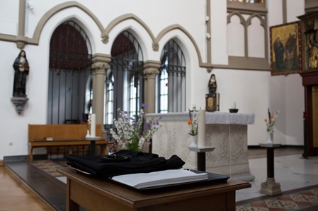 Sind Sie sich sicher, Ihrer Berufung folgen und Ihren Glaubensweg gehen zu wollen, schließen Sie einen Bund mit Gott – und treten in unser Kloster ein. Damit steht das Loslassen und Neugewinnen im Mittelpunkt: Das bisherige Leben mit seinen Aufgaben, Vertraut- und Gewohnheiten will verabschiedet, ein neu ausgerichtetes, inspirierendes und doch fremdes Leben begonnen werden. Dabei begleiten wir Schwestern die Neuankommende mit ganzem Herzen, wie im Psalm 27,14b besungen: „Habe festen Mut und hoffe auf den Herrn“.