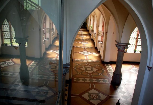 Die hohen Decken, die lichtdurchfluteten Flure – unser Kreuzgang führt uns anmutig zu den zentralen Räumen: zur Kapelle, zum Kapitelsaal, zum Refektorium. Die in allen benediktinischen Klöstern übliche viereckige Form steht symbolisch für den Weg des Lebens und der geistlichen Sammlung.
