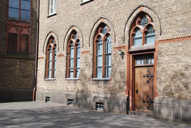 Hinter den roten Backsteinmauern trifft man auf einen gotischen Bau. Er atmet einerseits Stille aus – und trägt andererseits tiefe Spuren der Geschichte. Denn der gemusterte Steinboden hat in beiden Weltkriegen Bombeneinschläge erlitten. Die Risse sind uns heute ein stilles Mahnmal für den Frieden.