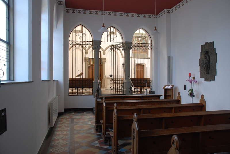 Eine Kerze für einen lieben Menschen entzünden – oder für sich selbst um Kraft oder Trost bitten: Unser 2018 eingeweihtes Herz-Jesu-Kapellchen ist jederzeit offen für Ihre Wünsche, Sehnsüchte und Sorgen. Die Jesus-Statue im Inneren stammt aus der Gründerzeit unserer Gemeinschaft, denn sie stand bis zum Zweiten Vatikanischen Konzil (in den 1960er-Jahren) auf unserem Hochaltar in der Klosterkirche.