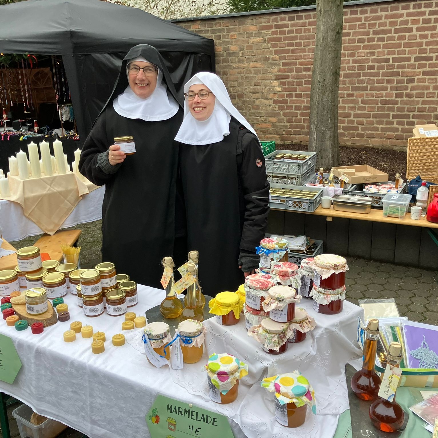 Jedes Jahr findet auf dem Platz unserer Nachbarkirche St. Maria Empfängnis der Veedels-Weihnachtsmarkt statt. Wir schätzen die adventliche Atmosphäre und den lebendigen Austausch mit den Raderthalern, Raderbergern und Bayenthalern sehr. Ein herzliches Dankeschön für Ihre Unterstützung, sei es durch den Kauf unserer Klosterprodukte oder durch Ihre Spenden.