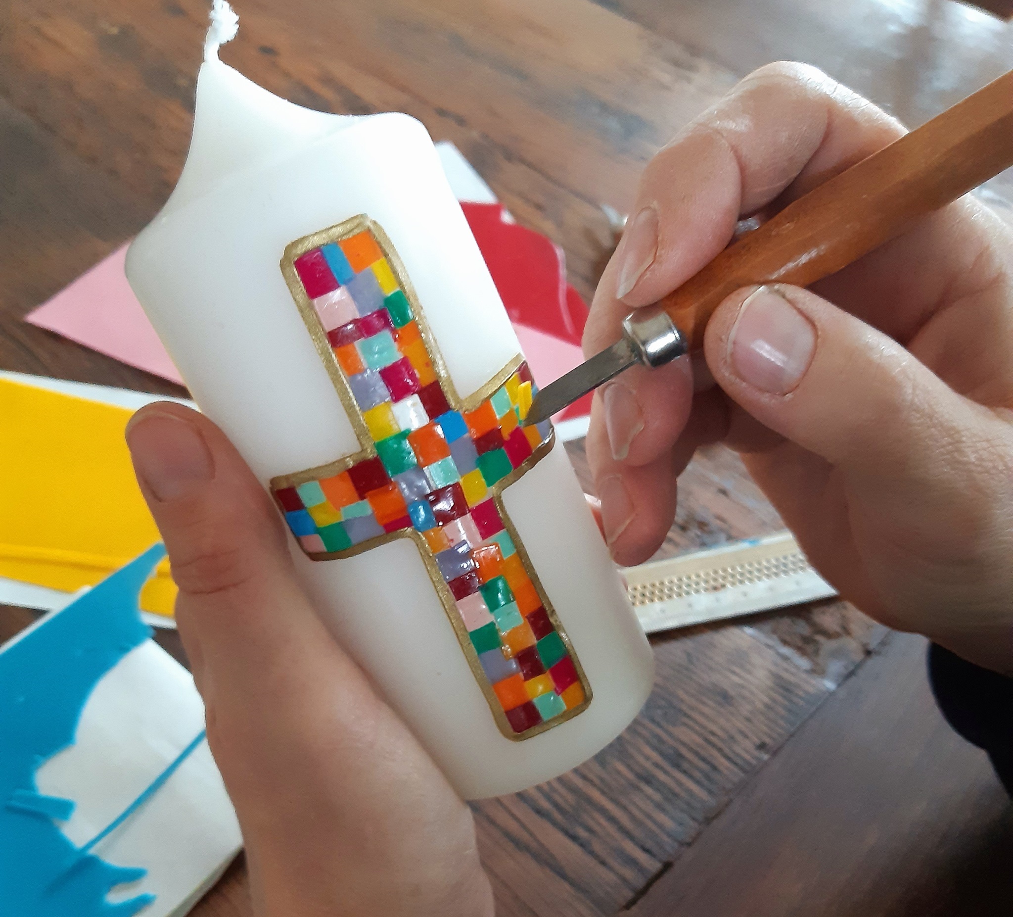 Wir Schwestern stellen deshalb eine Vielzahl von Klosterprodukten her: Wir verzieren Kerzen, gestalten Gruß- und Festkarten und häkeln Stofftiere, wir verarbeiten die Schätze der Natur in unserer Kräuterei und Imkerei, wir schreiben Bücher und empfehlen geistige Literatur, wir knüpfen Rosenkränze sowie Komboskini.
